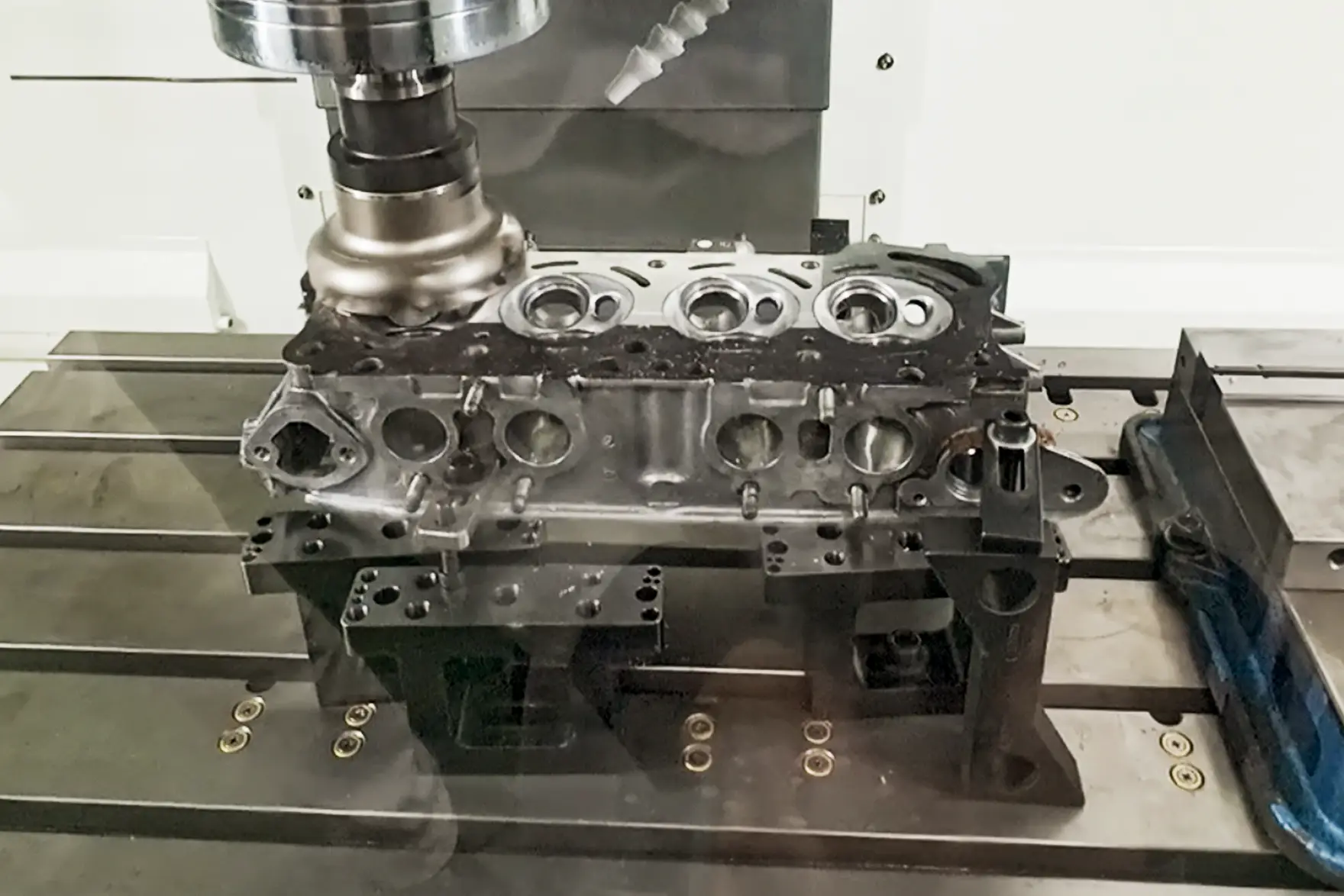 学園の設備であるNCフライス盤を利用してエンジンヘッドを面研。