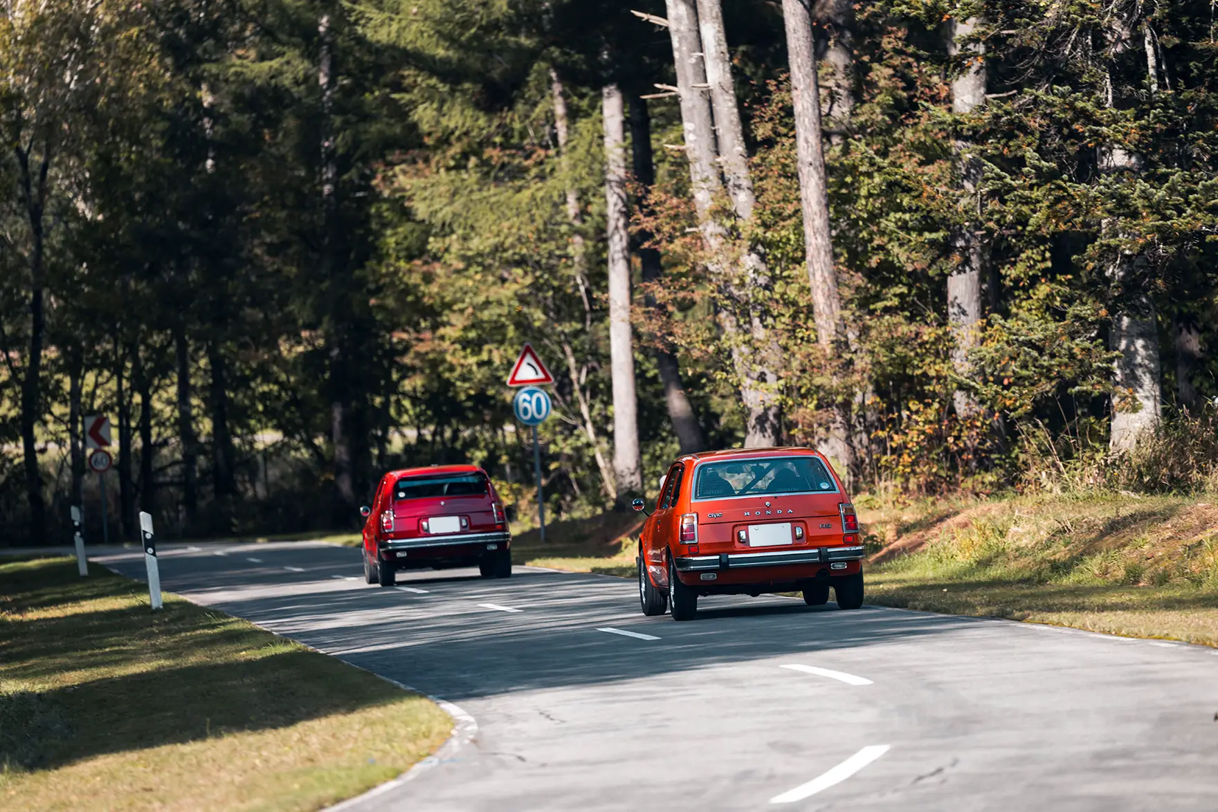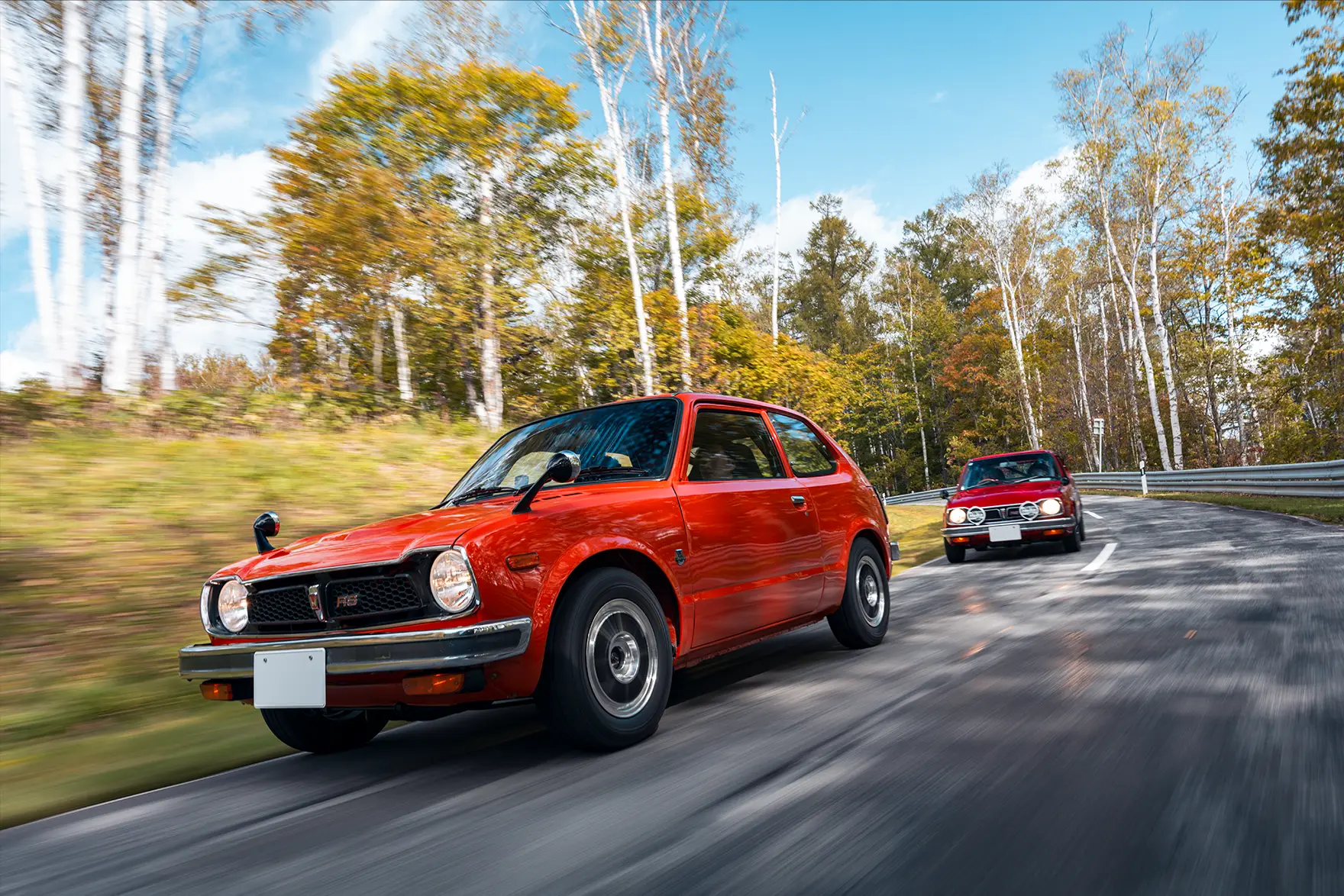 参戦するのは2台の初代CIVIC RS。オリジナルボディーカラーであるサンセットオレンジをイメージした「サンセット号」と、マドリードレッドをイメージした「マドリード号」です。
