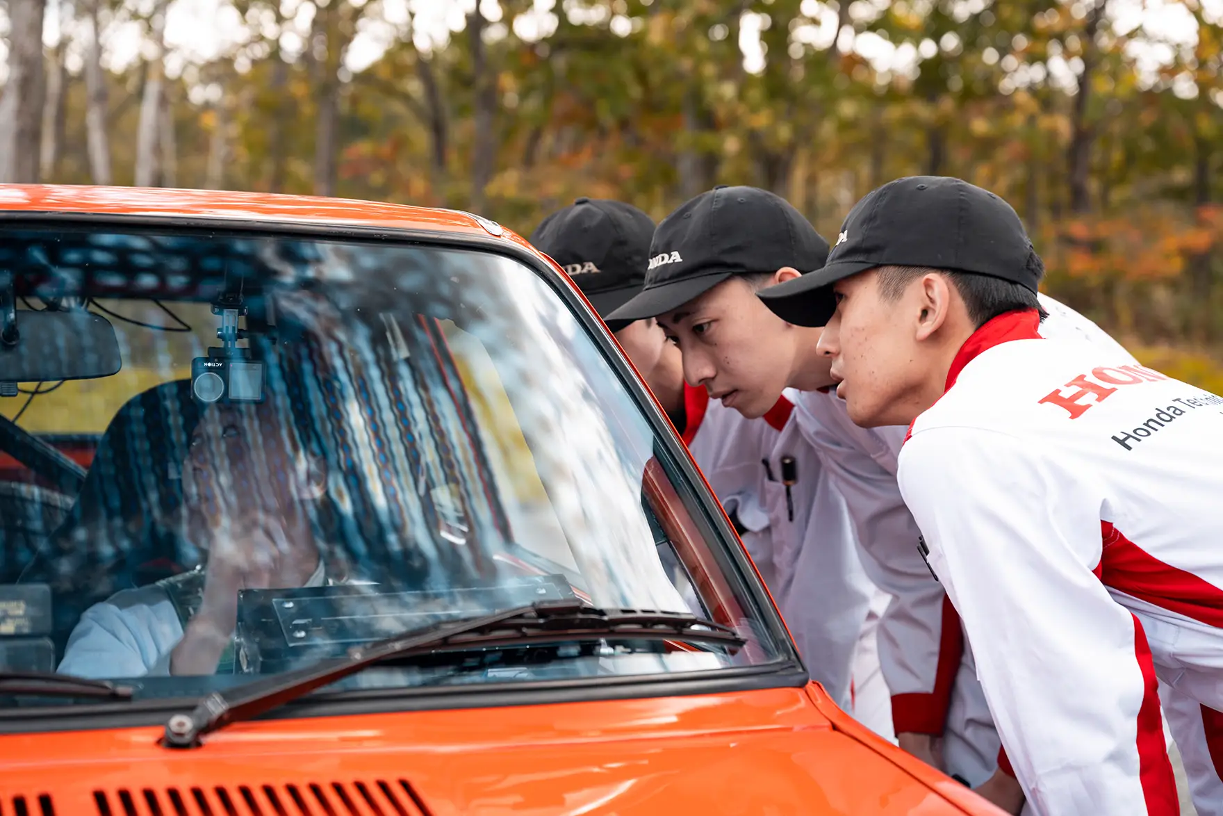 Hondaでの技術開発やメンテナンスサービス、さらにF1で世界を転戦するなど、幅広い現場経験を持つ教員たちは、自らの実務経験をもとにアドバイスをするだけです。2台のCIVIC RSは、学生のチャレンジングスピリットとホンダ学園で磨いた技術で復活を遂げたのです。まさに、現場で問題に対処し工夫する能力を育む貴重な実践経験となりました。※ 競技中、走行距離・平均速度・目的地までの到着時間などの情報をベースに、走行速度を計算する装置