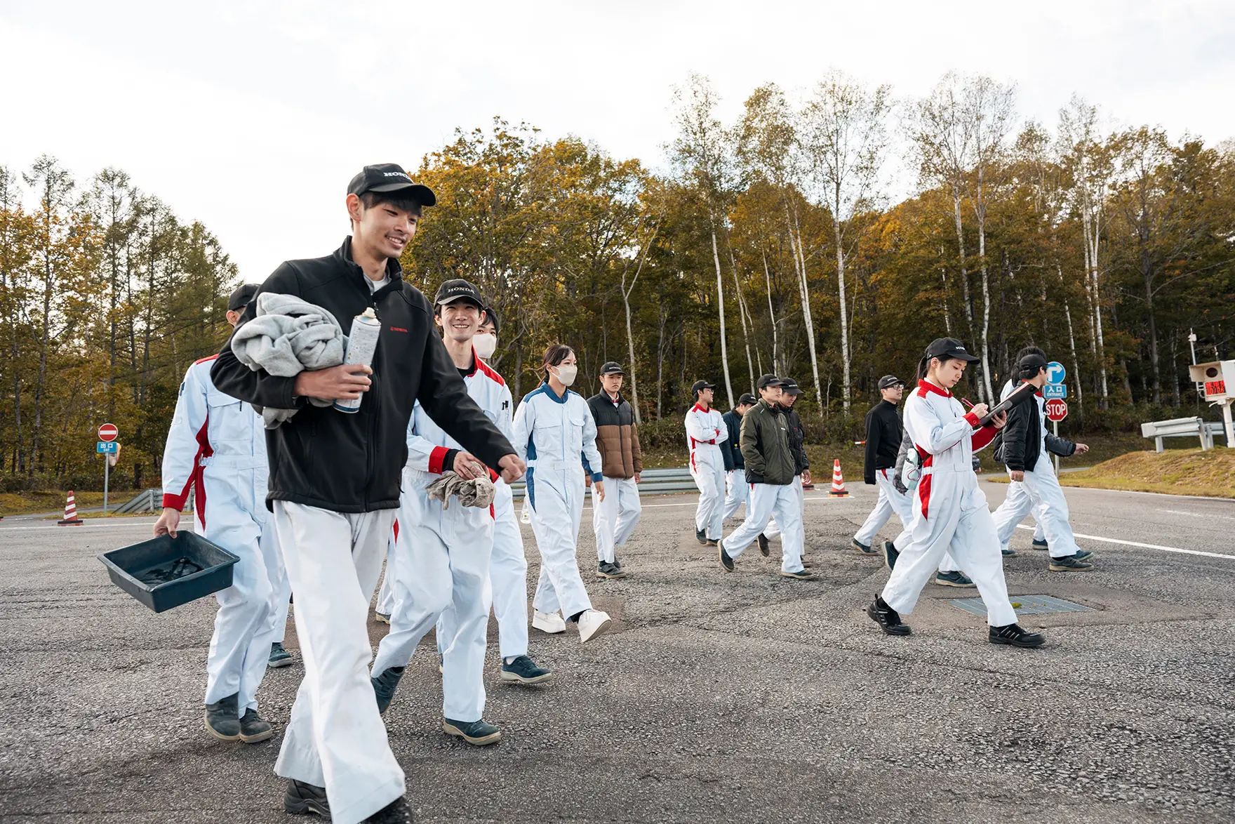 佐藤さんはもともとHondaの技術を継承するホンダ学園に思い入れがあり、入学式などにメッセージを送り、講演で自身の挑戦の経験を学生たちに語るなど縁のある存在です。今回のモンテカルロへの挑戦にあたり、プロドライバーにもステアリングを握ってもらいたいというホンダ学園の思いに、学生たちを知る佐藤さんが、困難に挑む学生のチャレンジングスピリットに共感し、世界で活躍できるエンジニアの育成にもつながると考えドライバーを快諾しました。鷹栖での実走テストでは、ヨーロッパの郊外路を模したテストコースであるEU郊外路を走行。事前にホンダ学園に足を運んでシート合わせは済ませているものの、実際に走行してステアリングを操り、ペダルを踏んだ感覚を反映してドライビングポジションを微調整。そして、高速域で走行してもクルマに不具合が出ないか、競技を想定した速度で走行してのラリーコンピューターの操作性の確認、ロングランをしたときの車両状態の変化など、さまざまな確認を行いました。