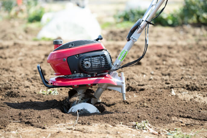 耕うん爪による土の仕上がりの違いを活かした使い分けもできそうだ。ミラクルローターで荒起しをした後に、標準耕うん爪で、土の浅いところを細かく仕上げれば、根の育ちやすい大小の粒が混ざり合った団粒構造の土も簡単に作れる。耕うん機は爪選びにもこだわってひとつ上行く、土づくりにぜひ挑戦してほしい。