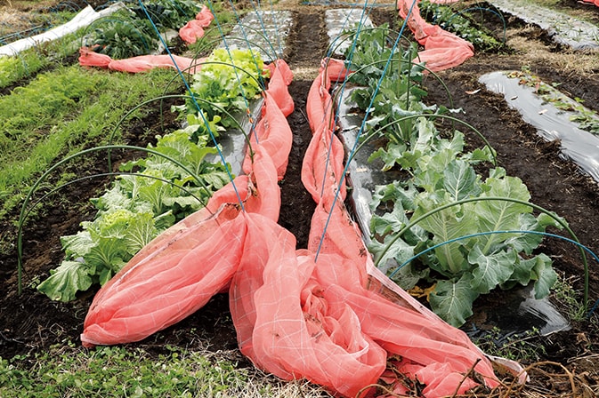 防虫ネットは収穫まで掛けっ放しでも構いませんが、害虫被害が少ない場合は外して寒さに当てましょう。