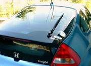 写真は秋晴れの中、自宅の庭で撮りました。実は洗車直後だったりします。車が小さいので、実は洗車も楽々(笑)小さければ商店街の狭い道も楽々。近所にある他のカラーのインサイトとすれ違ってみたりして。
