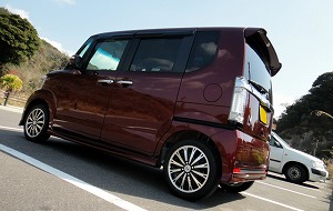 一ヶ月点検も無事終わり、やっと愛車N BOXに無限パーツ(フロントスポーツグリル・フロントロアスポイラー・ベンチレーテッドバイザー&アクセサリーのシフトノブ(本革製))装着!フロントのメッキ部分が変わるとN BOXのイメージも変わり、さらにいい感じに。ついでに、ちょっとカタログのターボページをまねて後ろ姿の写真も撮ってみました。