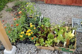 野菜だけでなくハーブやお花を菜園におりまぜ、香りと見た目の美しさが漂う菜園です。