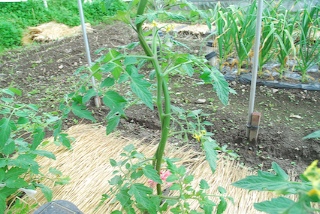 芽かき作業及びラセンの支柱に誘引しなおしました。