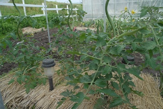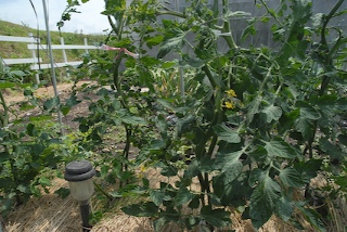 黄色い花が開花、実りが良くなるため、花にトマトトーンを吹きかけました。