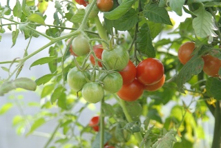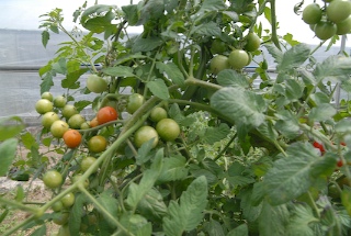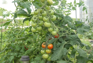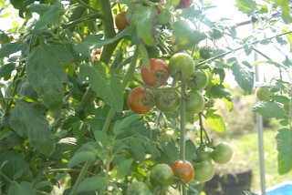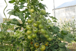 ミニトマトに比べ房の玉数は少ないですが、実はたくさん実ってきました。